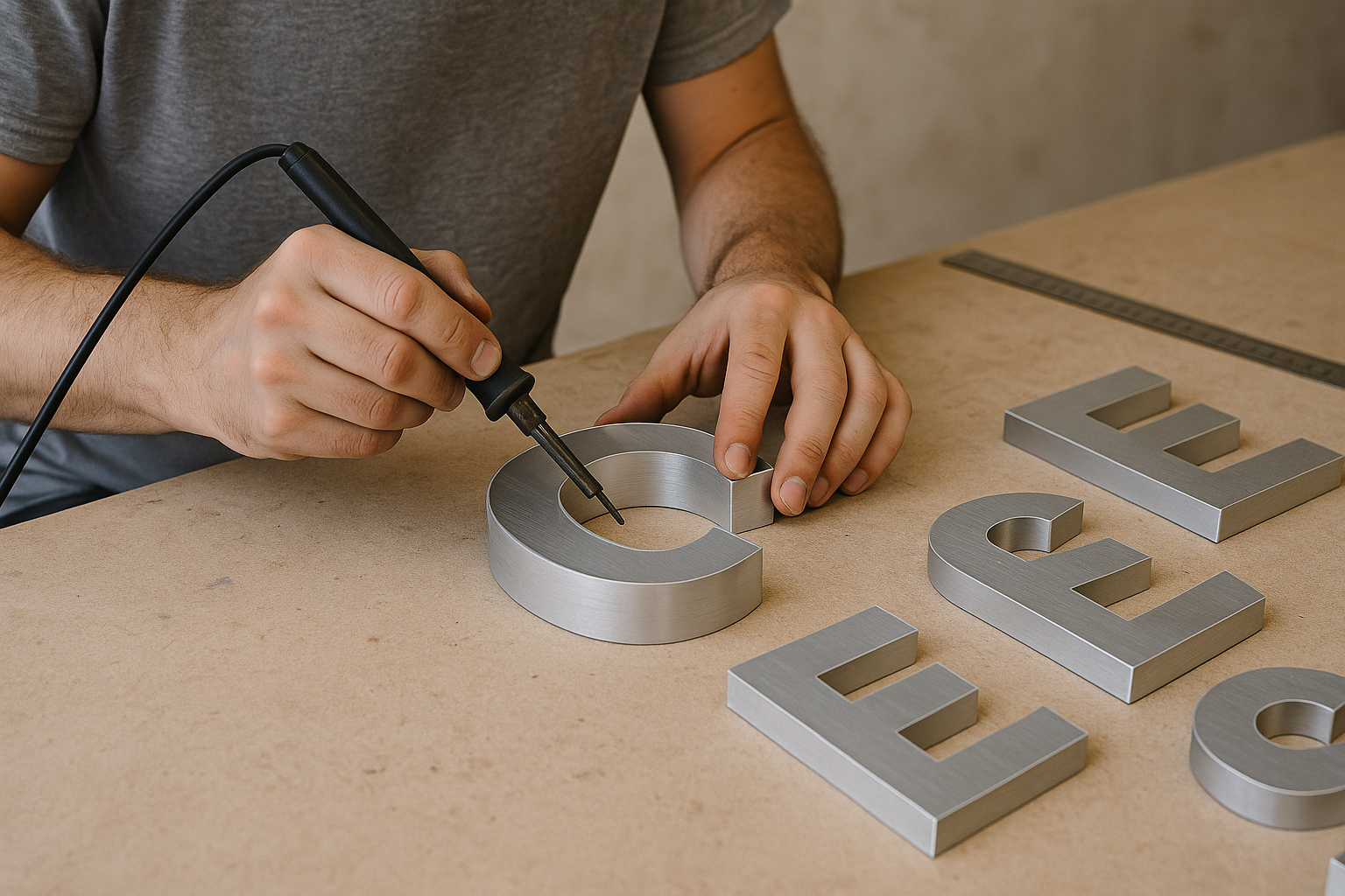 Huruf yang telah terbentuk kemudian dirakit bersama komponen lain, seperti sistem lampu LED dan rangka penyangga. Proses ini memerlukan ketelitian tinggi agar kabel listrik tidak berantakan, sambungan kuat, dan semua elemen menyatu sempurna. Pemasangan modul LED juga harus memperhatikan distribusi cahaya supaya seluruh permukaan signage menyala merata.